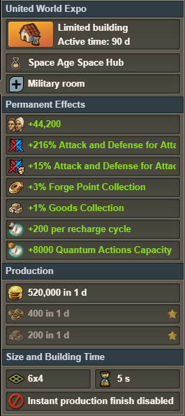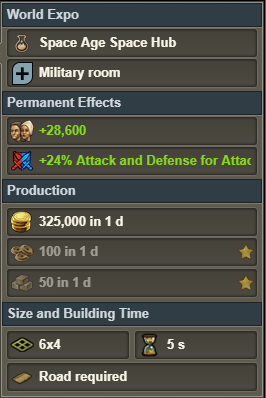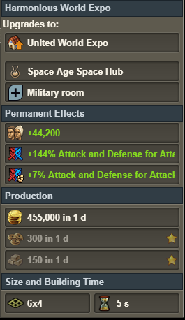 ataque y defensa para el ejército atacante y defensor en todos los niveles de la Exposición Universal, que varía ligeramente según la era: